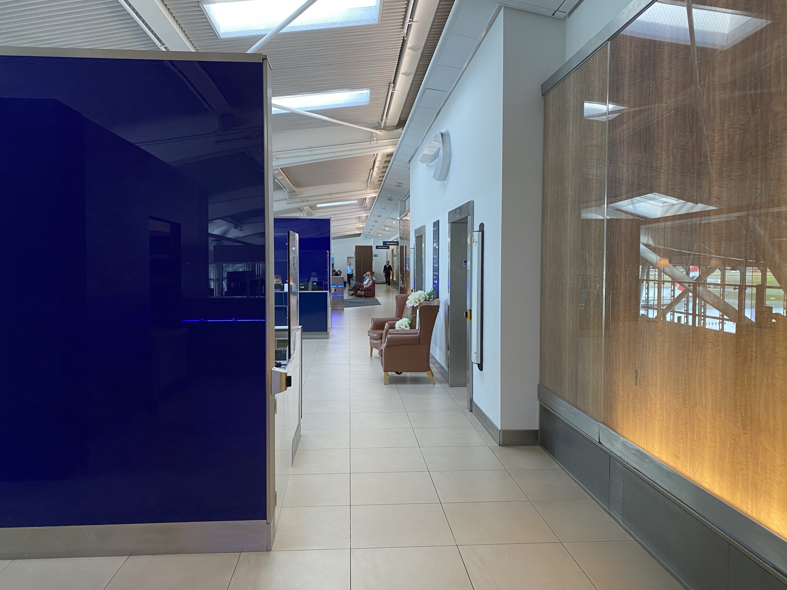 The lounge was located in Terminal 5 Satellite B on the Mezzanine Level, which is accessible by a lift or stairs.