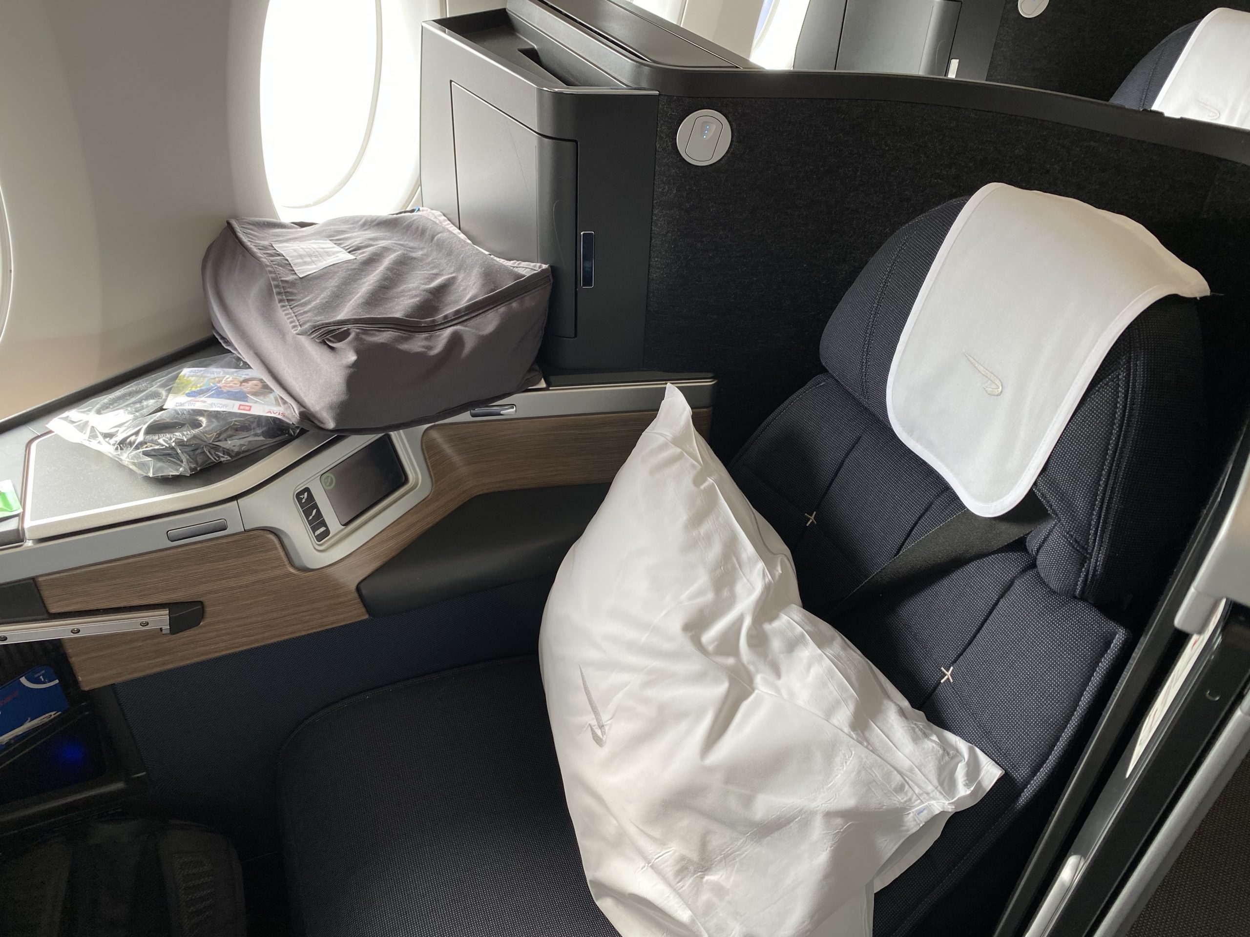 We were seated in the larger forward section of business class at the front of the aircraft. There is a smaller cabin in front of the premium economy with 12 seats and behind 1 of 3 toilets servicing business class passengers.